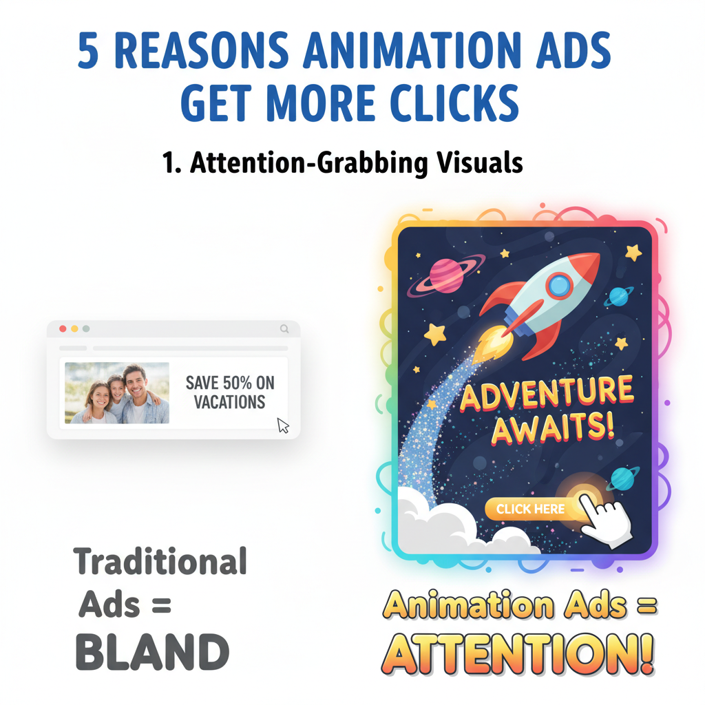 In today’s fast-paced online environment, the average attention span is shrinking. A static image or plain text advertisement rarely makes someone pause mid-scroll. Animation ads, however, are visually dynamic, colorful, and designed to spark curiosity in just a few seconds. Movement naturally draws the human eye, and animated graphics create an immediate hook that traditional ads cannot replicate.